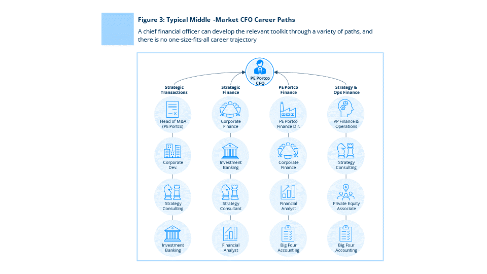 In short, there’s no one-size-fits-all career trajectory for an ideal CFO candidate, and the perfect profile largely depends on the firm’s investment goals. Individuals targeting these roles can acquire the relevant toolkit through a variety of strategies, as shown in the figure below.