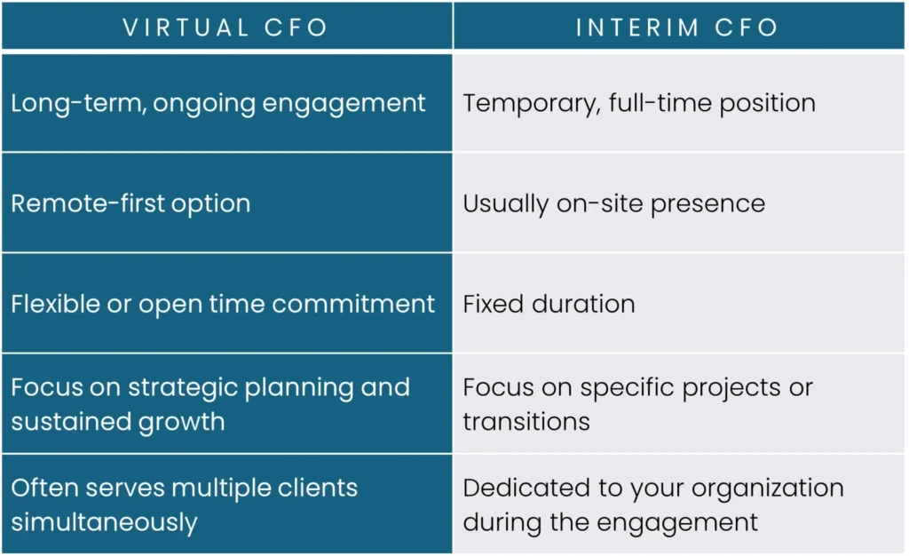 While both virtual and interim CFOs provide professional financial leadership, they serve different business needs. Let’s take a look at both.