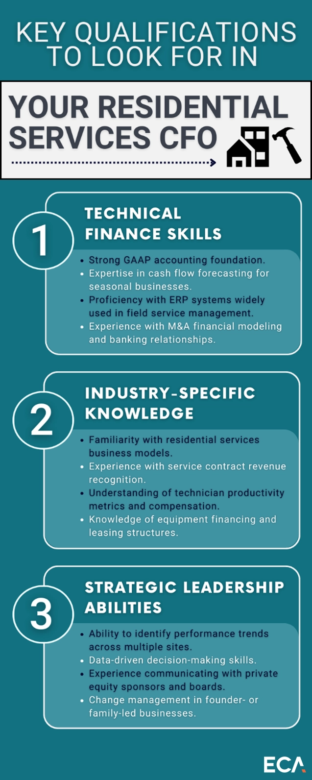 Today’s CFO isn’t just there to keep an eye on the books—they help shape growth plans, streamline operations, and build trust with investors. With private equity fueling rapid consolidation and expansion in residential services, having the right CFO on your team can make the difference between simply keeping up and leading the market.